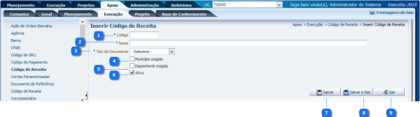 5 Ativo Assinale para ativar ou desativar o código da receita.