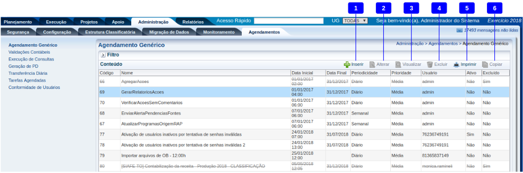 | 6 | Botão Copiar | Selecione um registro e clique no botão para copiar o agendamento genérico. |